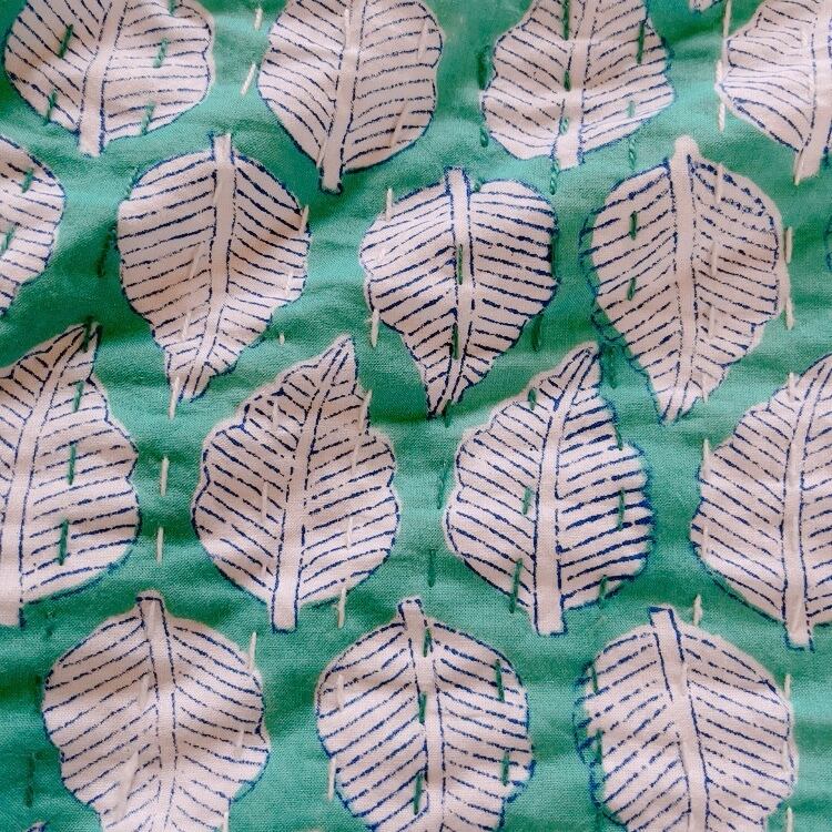 (M)グリーンリーフ ブロックプリントキルト ベッドカバー ソファーカバー カンタキルト