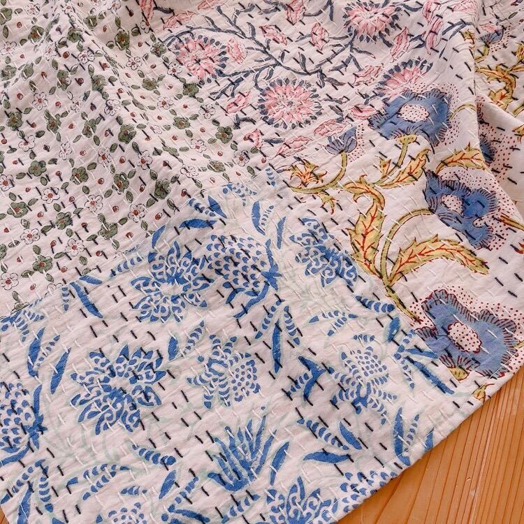 mini【約76㎝×約94㎝】ホワイト系パッチワークキルトE