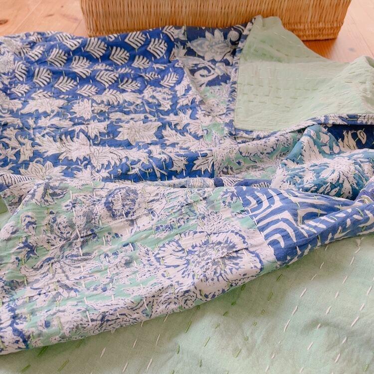 ブロックプリントキルトの愛らしい柄は、