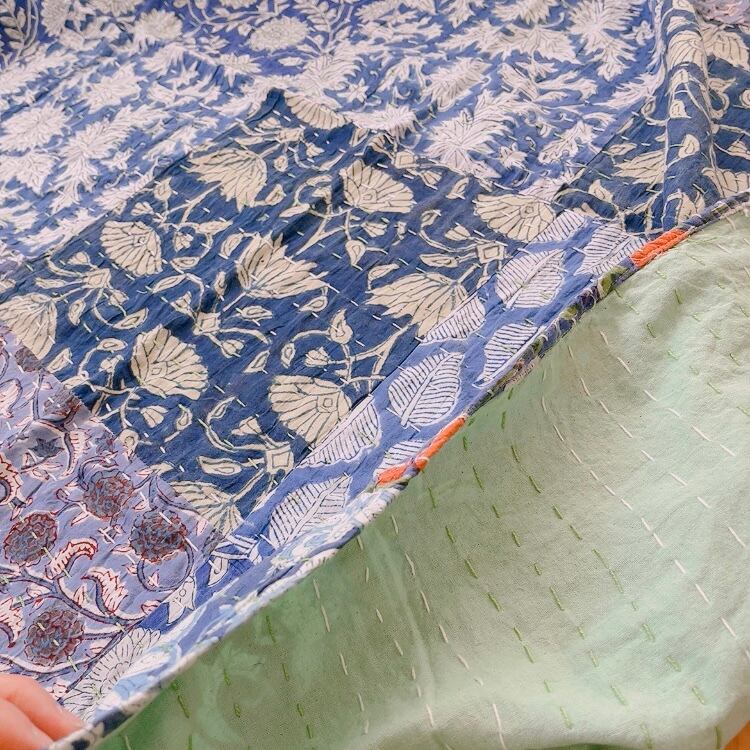 ブルー系の生地を集めたベビーサイズのキルトです。