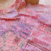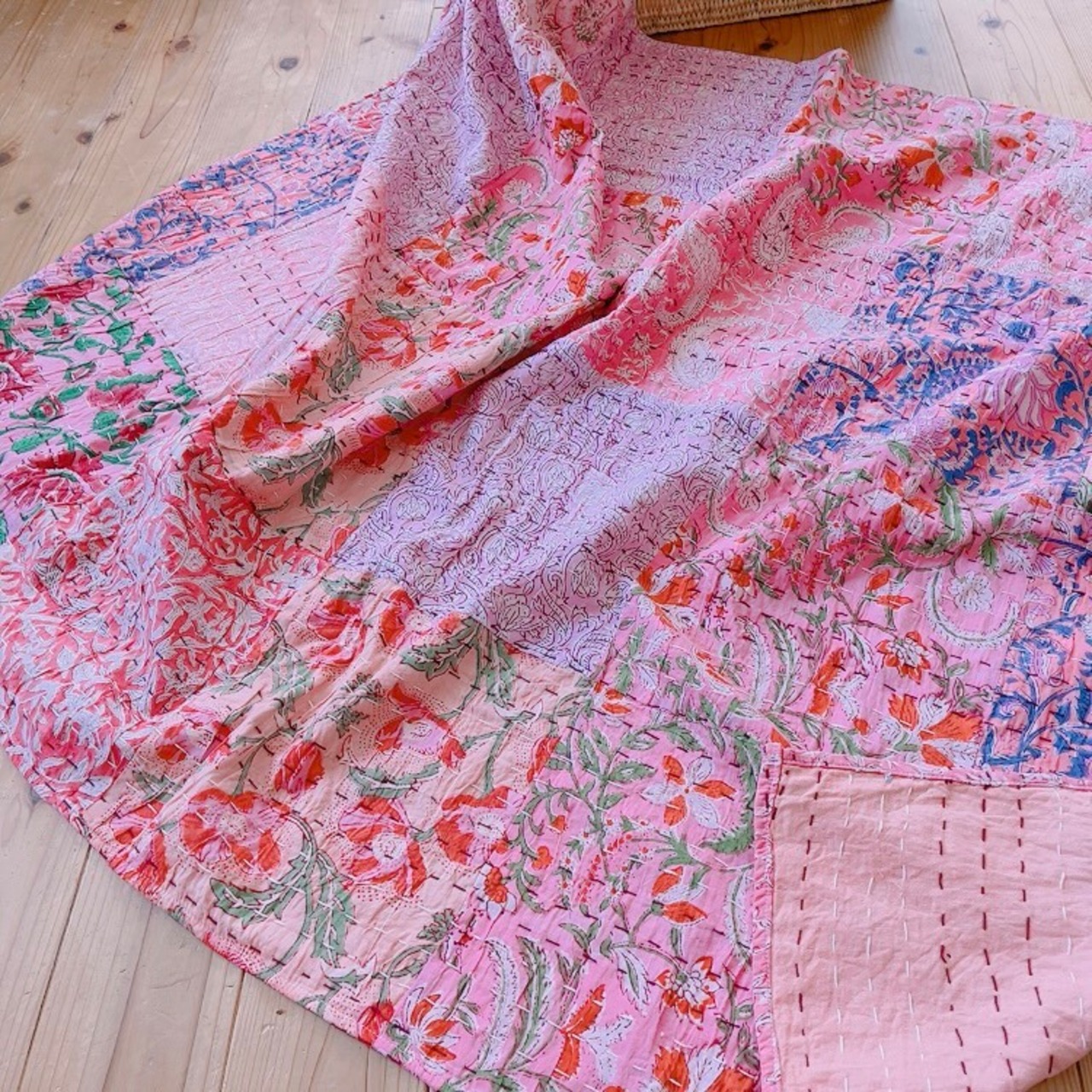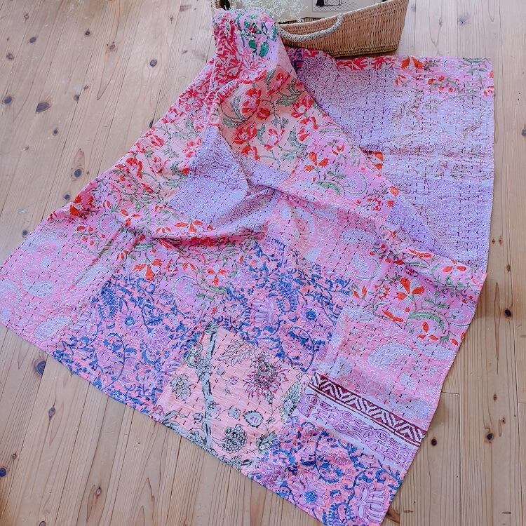 ピンク系の生地を集めたベビーサイズのキルトです。