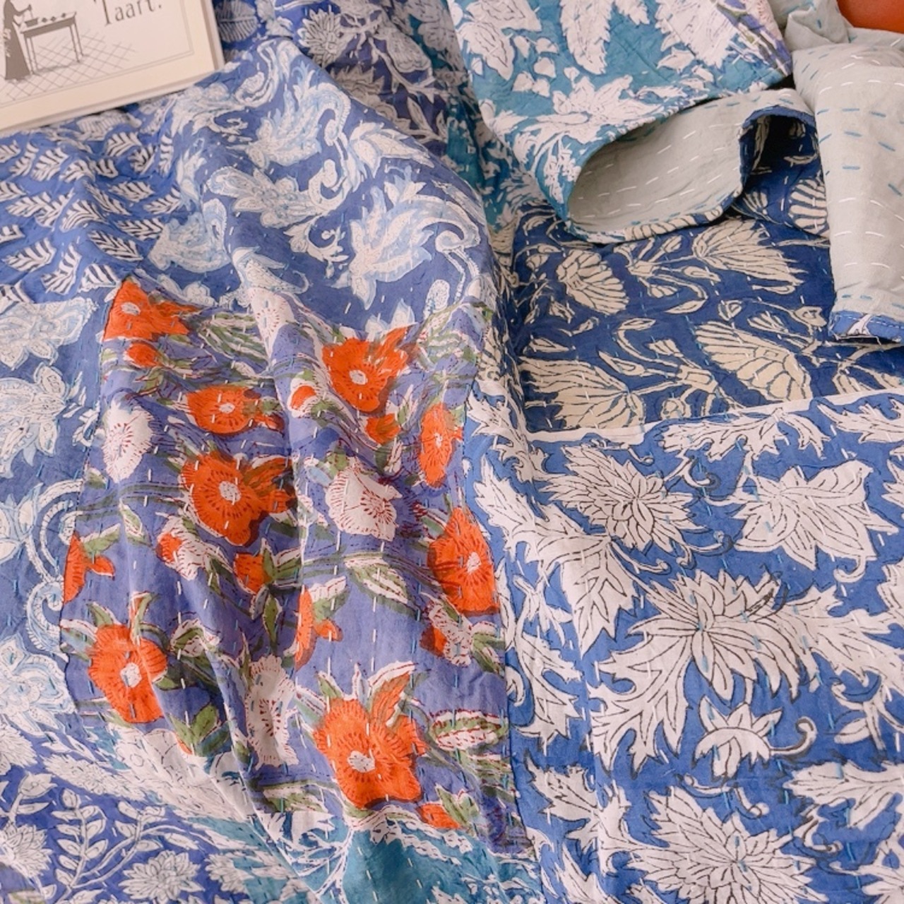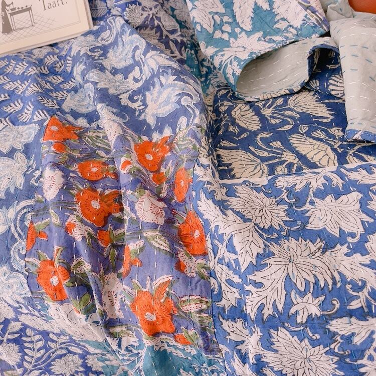 ブロックプリントキルトの愛らしい柄は、