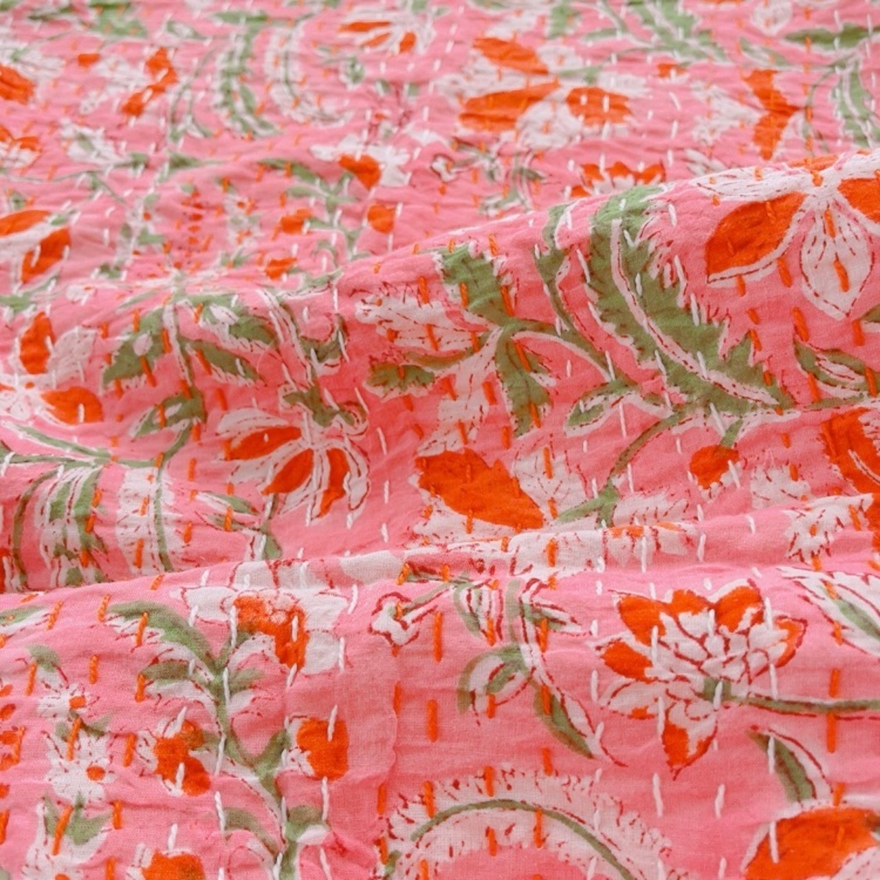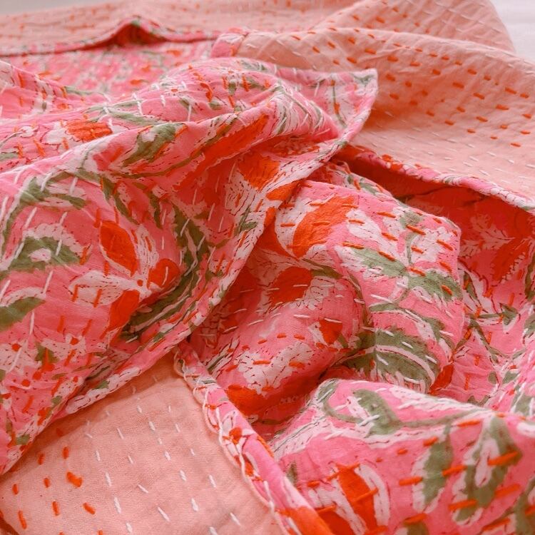 フラワー柄の可愛らしいデザインのベビーサイズのキルトです。
