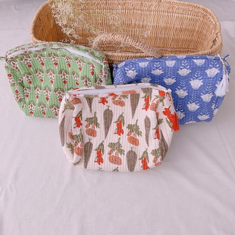 【L】ブロックプリントポーチ