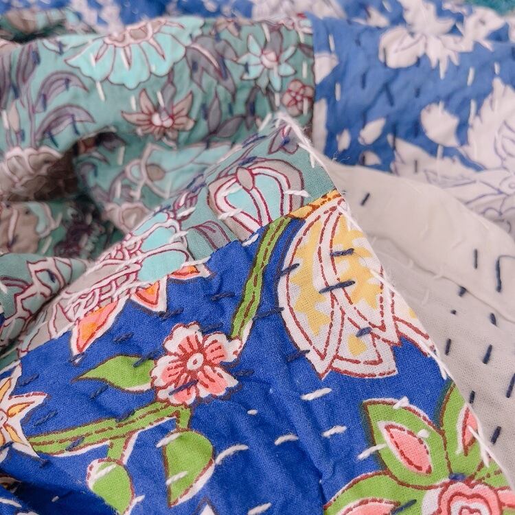ブロックプリントの生地を、ユニークな組合せでしましまにパッチワークした