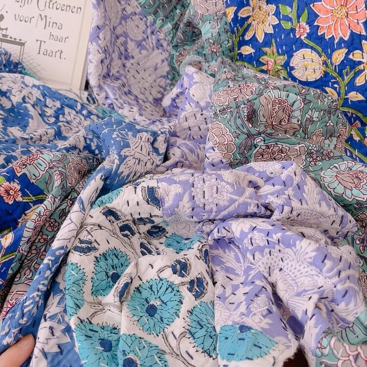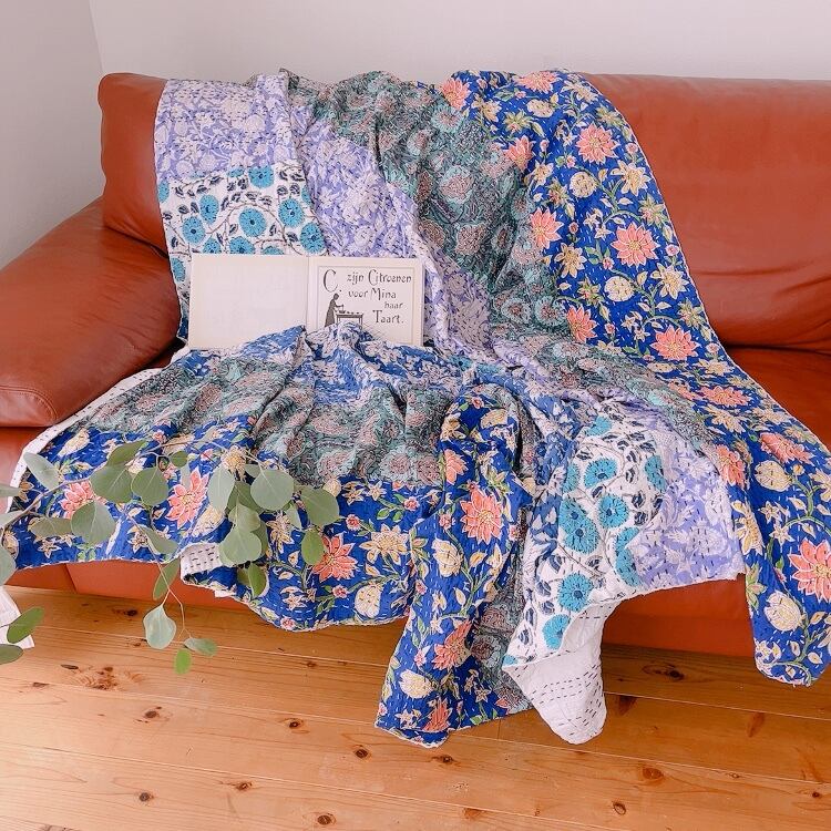 【M】しましまパッチワーク(A) ブロックプリントキルト