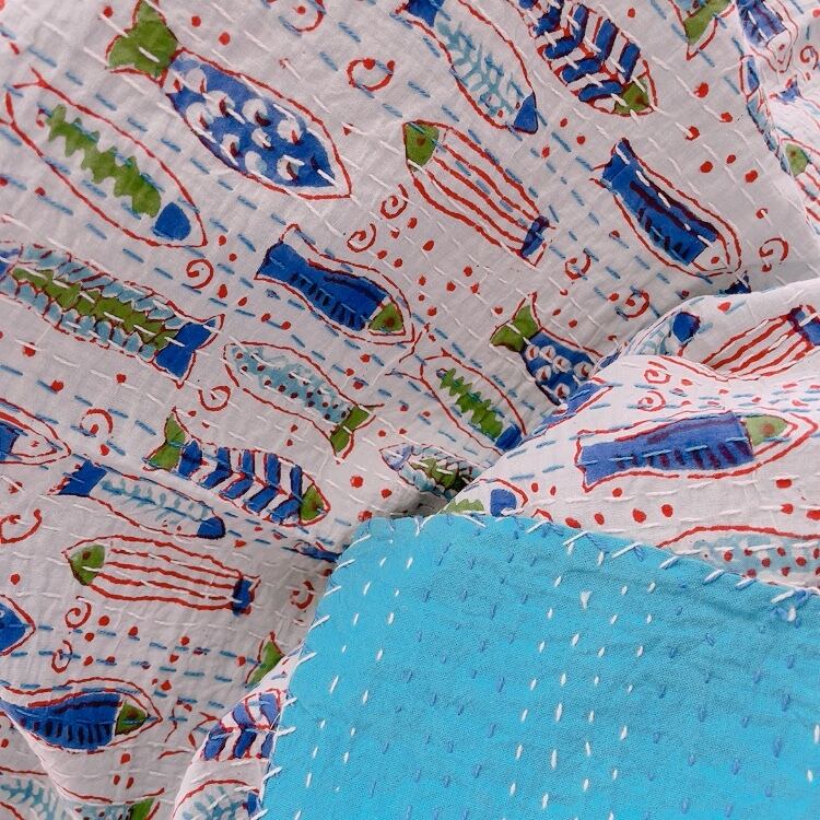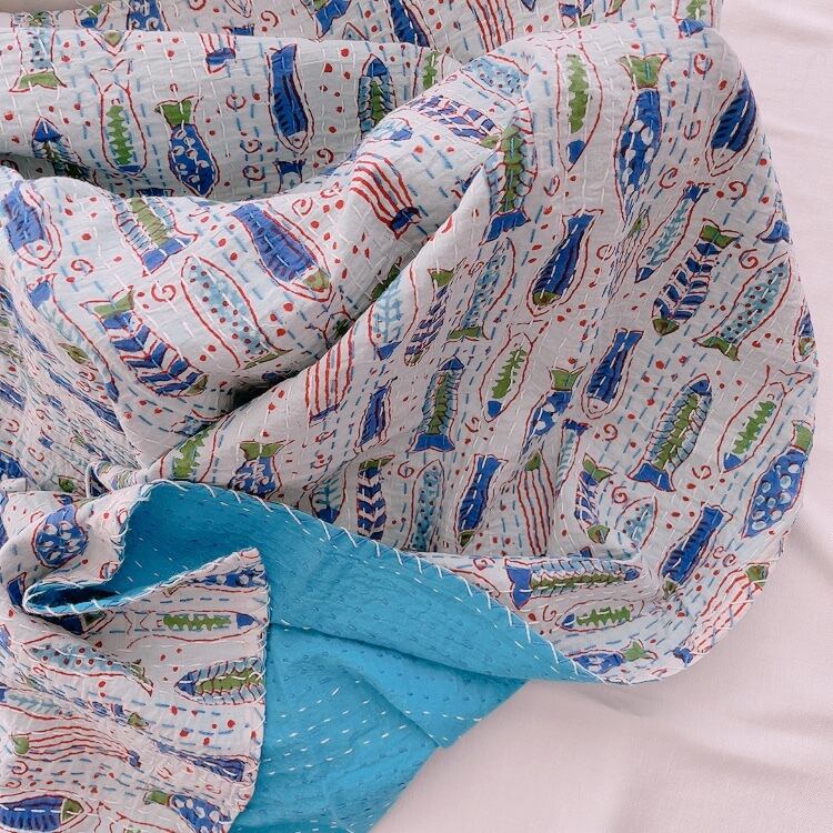 お魚柄の可愛らしいデザインのベビーサイズのキルトです。