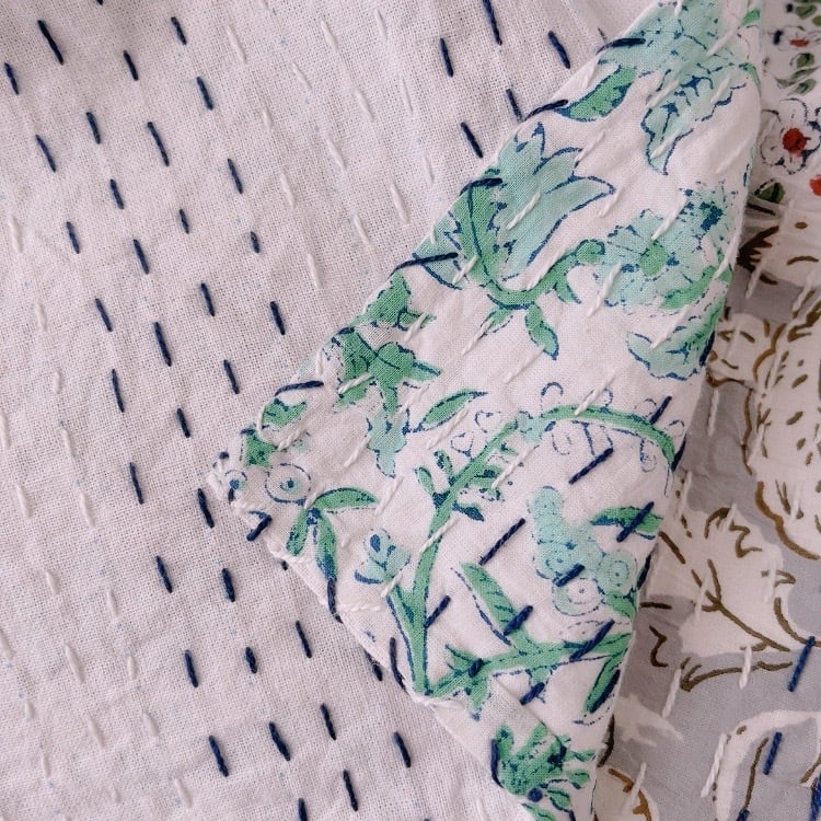 【S】Whiteホワイト ベビーキルト・ブロックプリントキルト