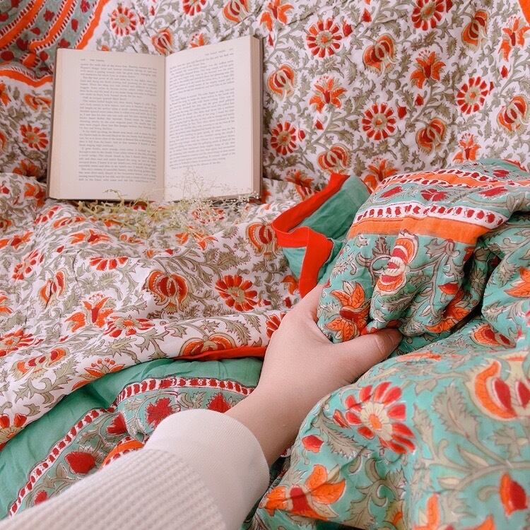 ブロックプリントキルトの愛らしい柄は、