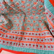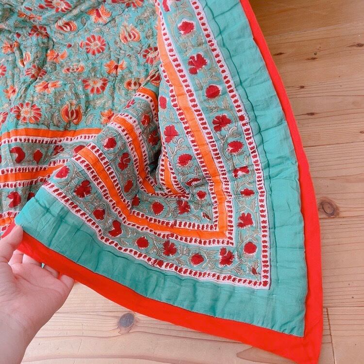 とても可愛らしいお花柄のブロックプリントの綿入りキルトです。