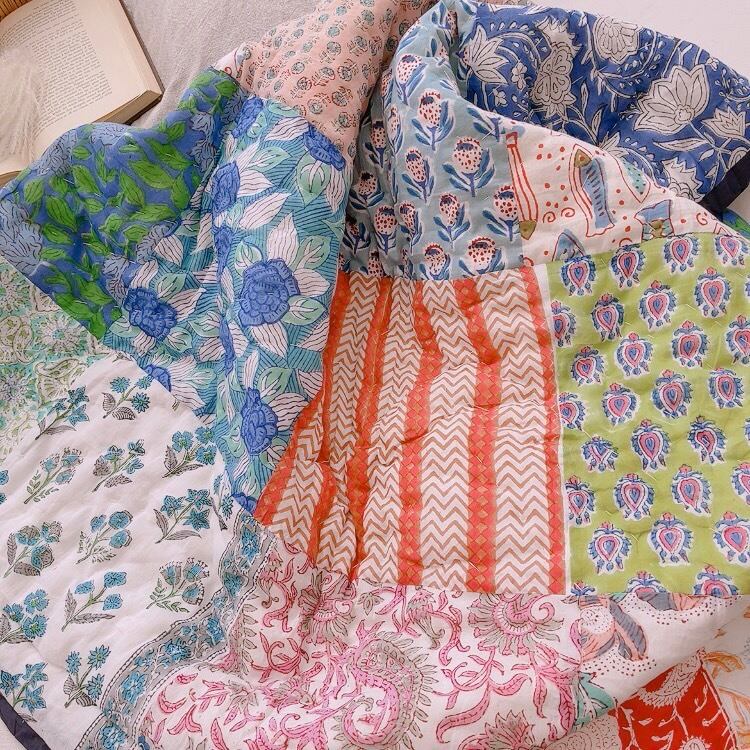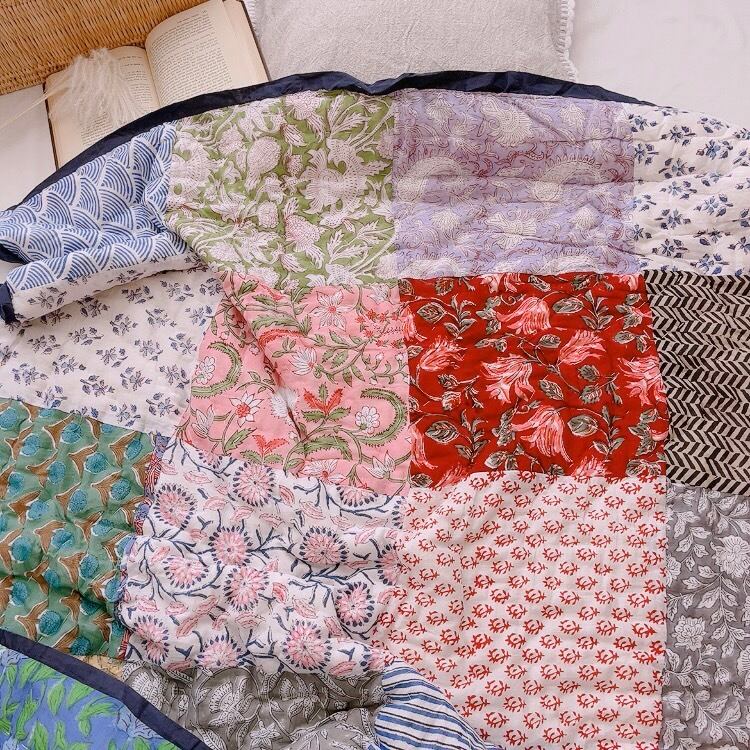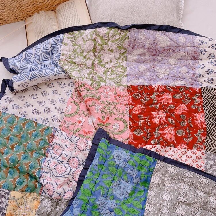 ブロックプリントキルトの愛らしい柄は、