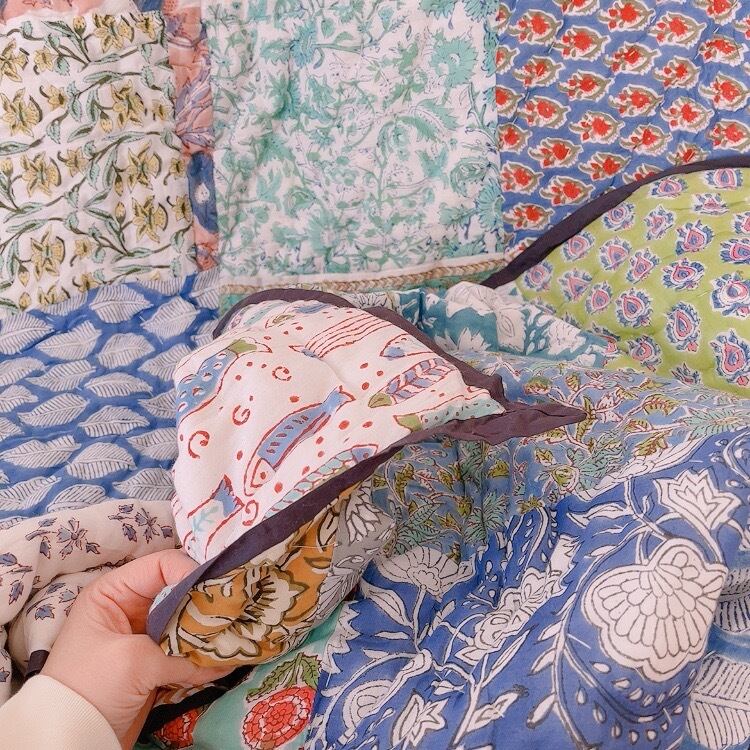 ブロックプリントキルトの愛らしい柄は、