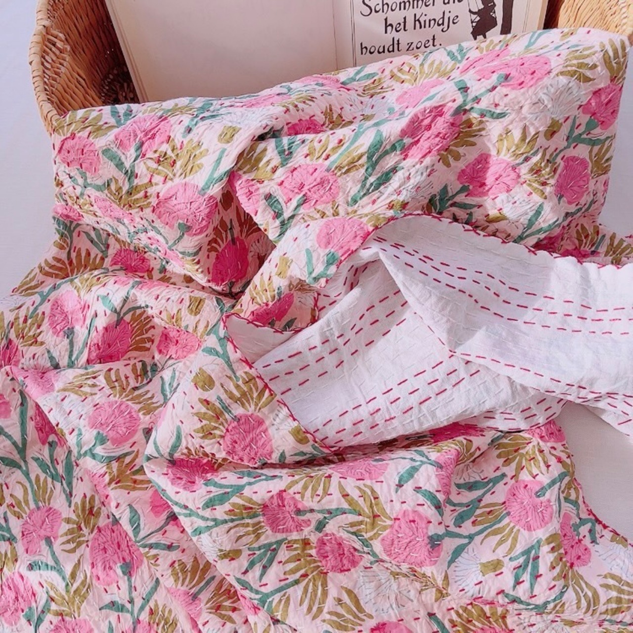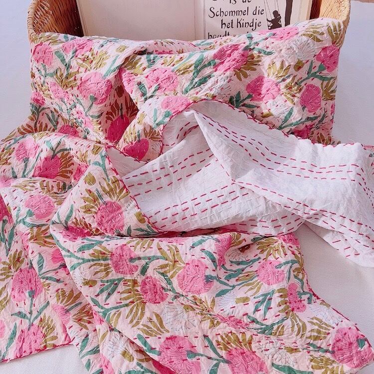 【S】ピンクフラワー ベビーキルト カンタキルト
