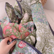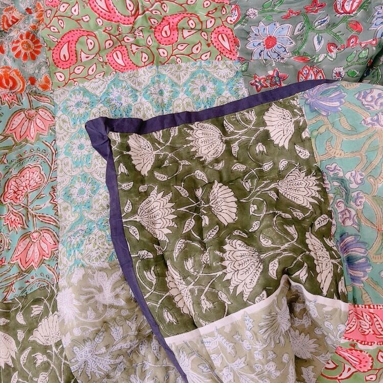 グリーン系のブロックプリント生地を集めたパッチワークの