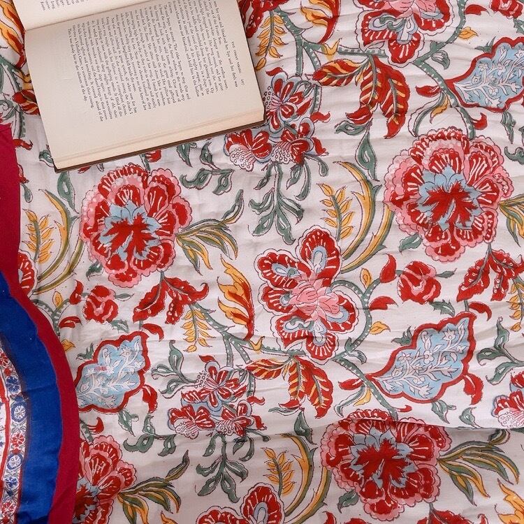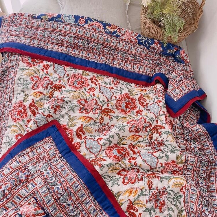 綿入り【M】フラワーフラワー ブロックプリントキルト