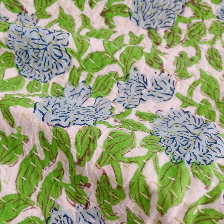 【M】フレッシュリーフのブルーフラワー(A) ブロックプリントキルト