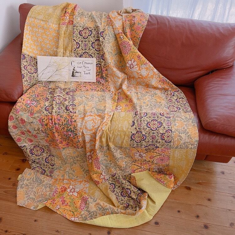 ブロックプリントキルトの優しい風合いのお色味が