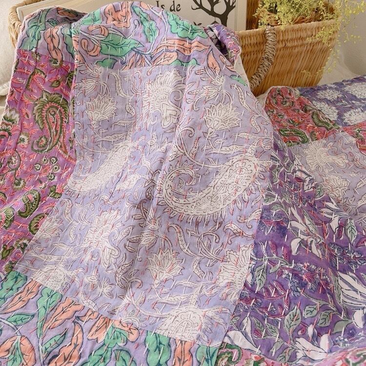 パープル系のブロックプリント生地を集めたビーサイズのキルトです。