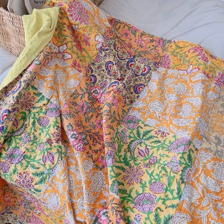 イエロー系のブロックプリント生地を集めたビーサイズのキルトです。