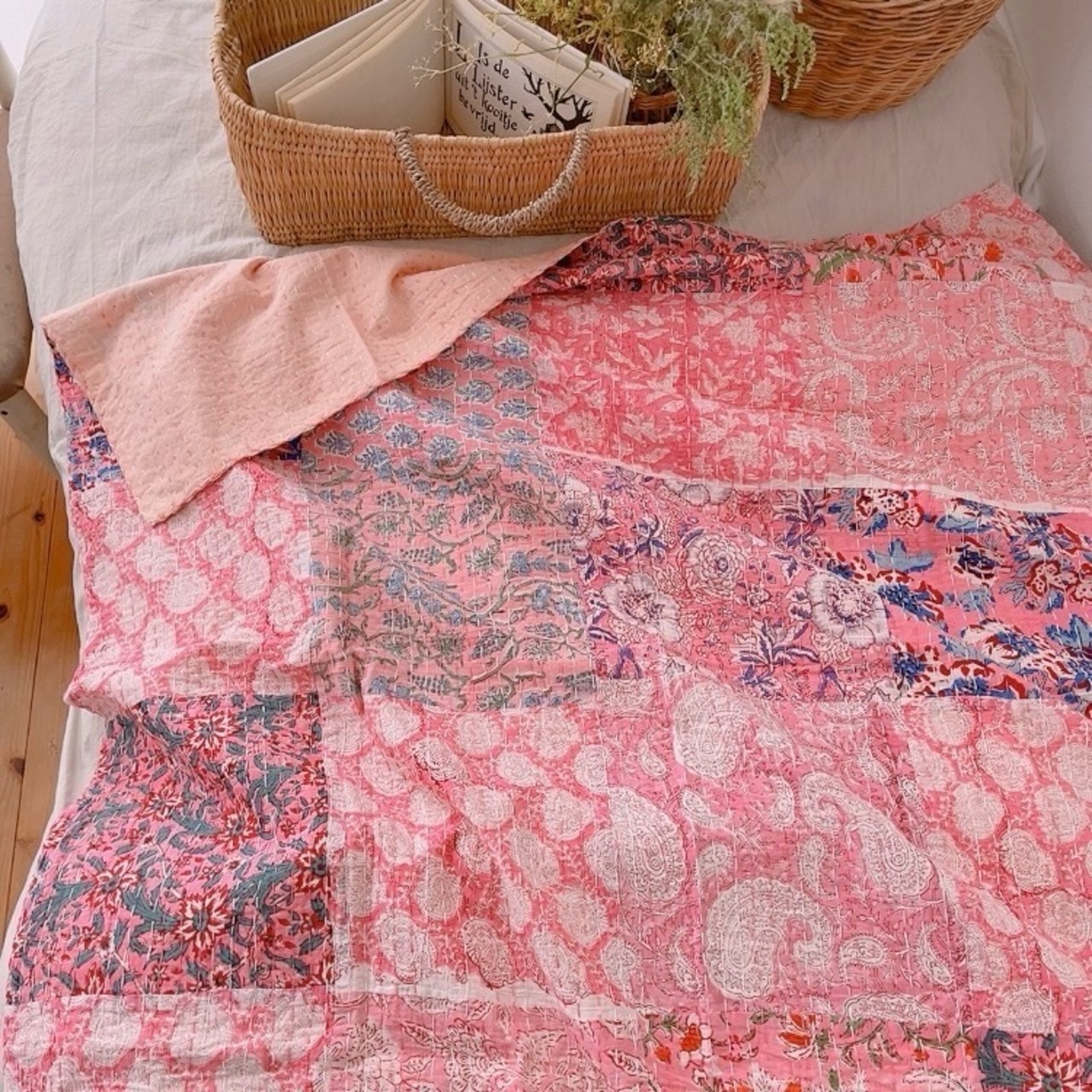 【S】Peachピンクパッチワークキルト ベビーキルト