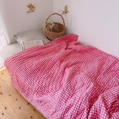 ポップなチェック柄のブロックプリントの綿入りキルトです。