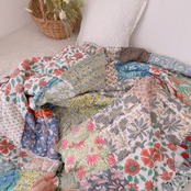 綿入り【L】カラフル×グリーンパッチワークキルト(B)