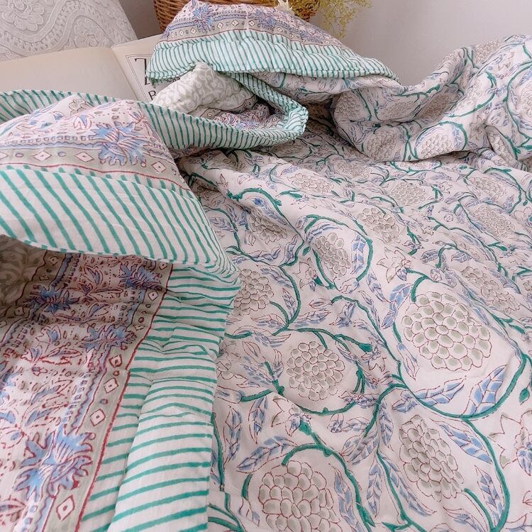 綿入り【M】ナチュラルフレッシュ ブロックプリントキルト