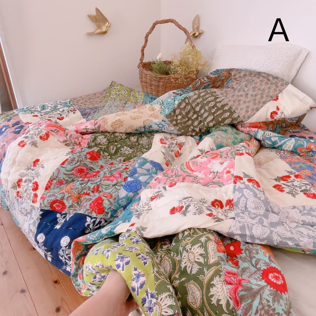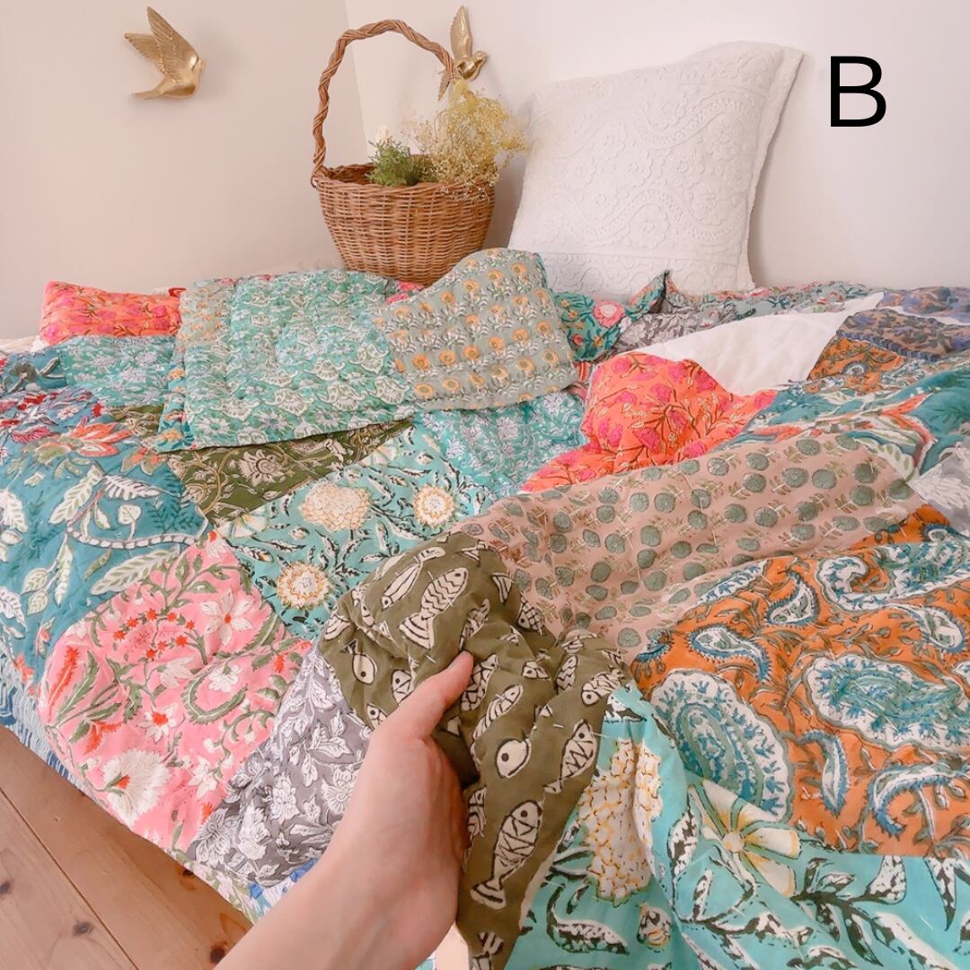 綿入り【M】カラフル×グリーン パッチワークキルトA~D