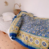 とても可愛らしいお花柄のブロックプリントの綿入りキルトです。